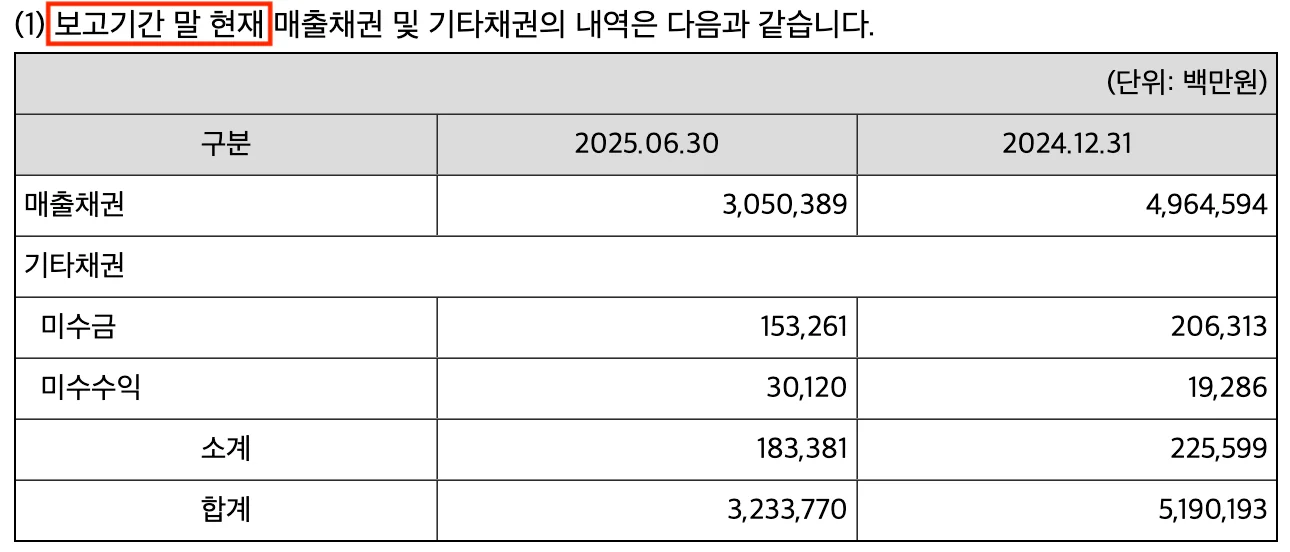 ex. '보고기간 말 현재' 내역을 나타낼 때 적용합니다.